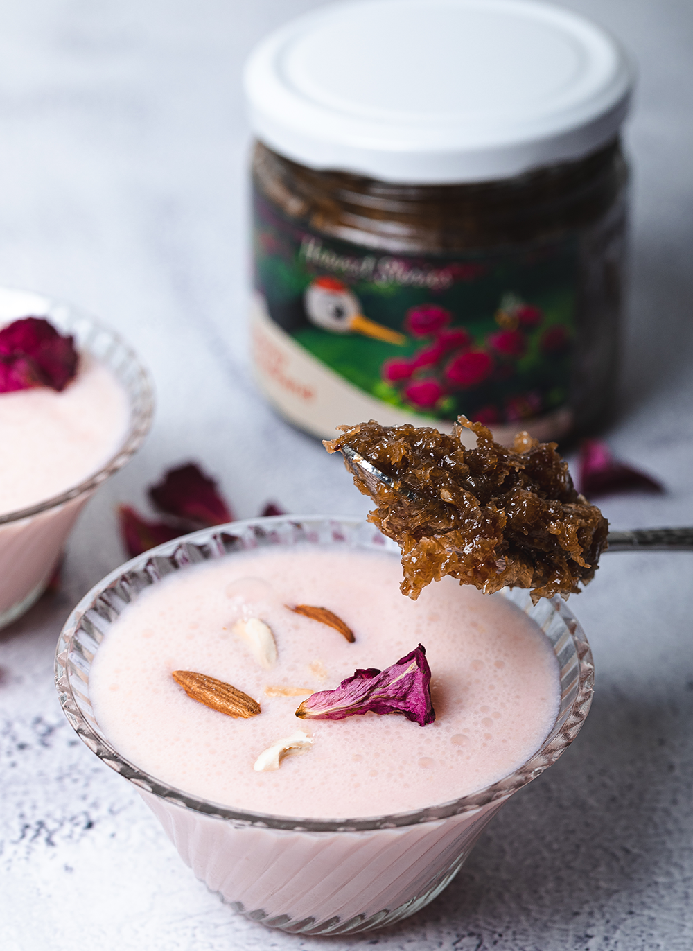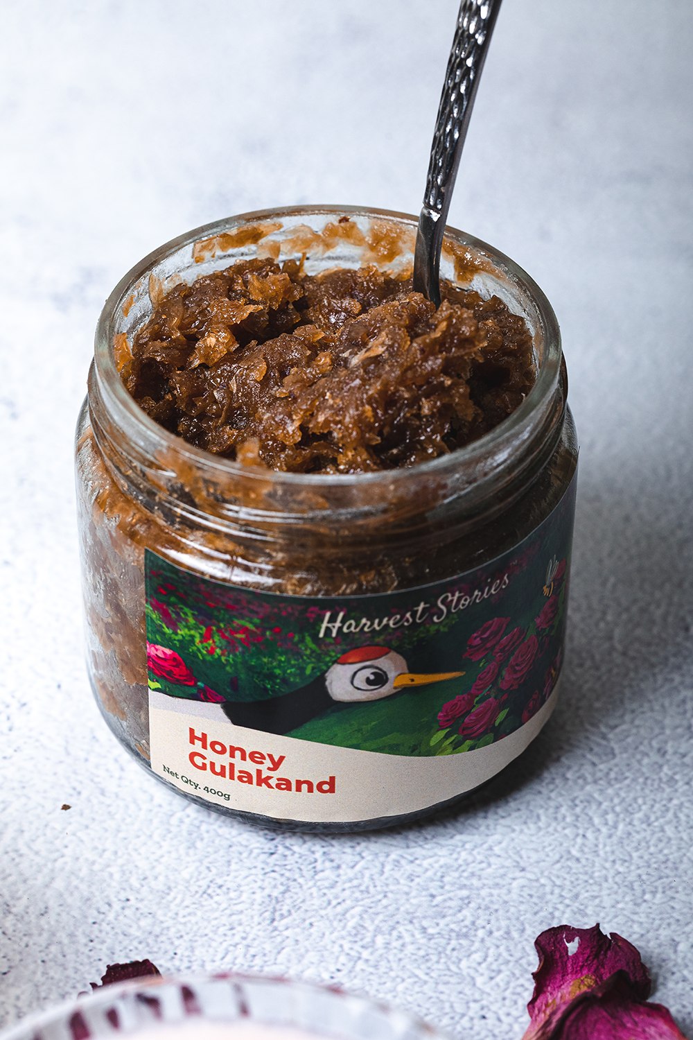 Gulkand ‘cools’ us with nostalgia: how summer vacations were turned busier with plucking gulaabs, drying them, and handing them over to be mixed with ‘khand’. But now refined sugar has stolen the ‘red spotlight’, so honey is our sweetener of choice.